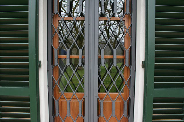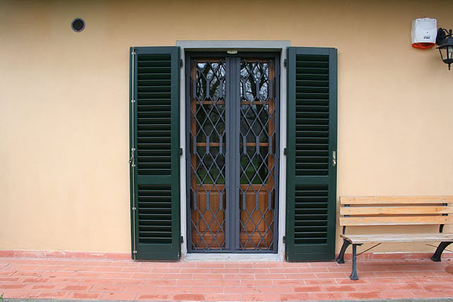 Sotto, le immagini della grata retrattile Umbria: robusta (realizzata con tondi pieni), esteticamente bella e particolare, sposa la sicurezza del materiale pesante con l'estetica austera e classica delle antiche grate umbre e toscane.