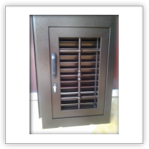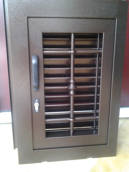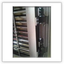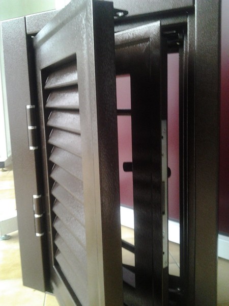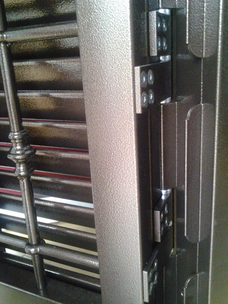 Sono realizzate interamente in acciaio zincato, poi verniciate a polveri epossidiche a forno. Il particolare sistema con cerniere a scomparsa ed antisfilo aumenta enormemente la sicurezza, e consente nel contempo l'apertura di entrambe le ante a 180 gradi. Il sistema di chiusura e serraggio con unico movimento blocca le ante ottenendo una altissima resistenza alla intrusione. Il telaio (20/10 e profondità 125 mm.) lato cerniere, ha un efficace sistema antistrappo a tutta altezza, sia per la persiana che per la grata.