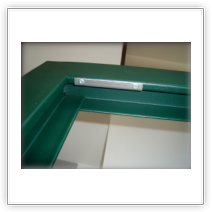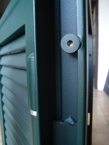 I profili utilizzati sono di tipo a sormonto. Ciò significa che esteticamente si avranno delle piacevoli cornicette lungo il perimetro esterno delle ante. Le lamelle (di tipo ovale) dopo il taglio vengono forate alle estremità, poi infilate nei profili delle ante precedentemente opportunamente asolati. Dopo questa operazione (eseguita con macchinario appositamente da noi studiato e realizzato) un perno di acciaio da mm.4 viene fatto passare attraverso i fori delle lamelle stesse realizzando così un insieme antistrappo e di ottima estetica (non ci sono grumi di saldatura).